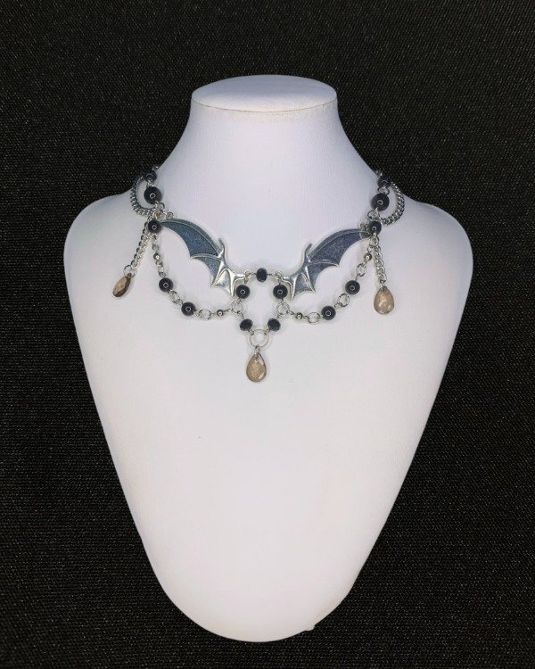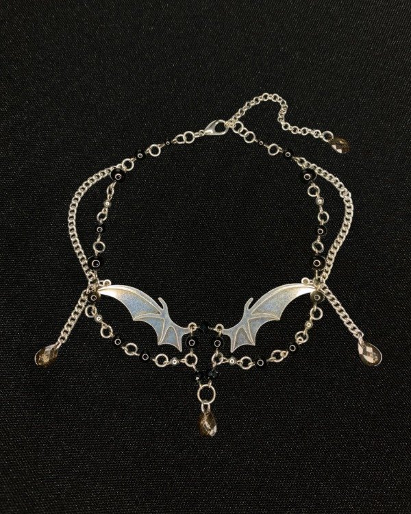 Collar con fornituras y cadenas de acero quirúrgico.